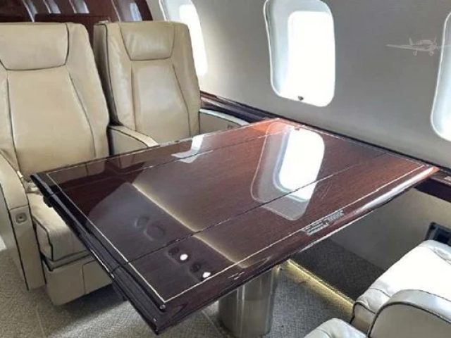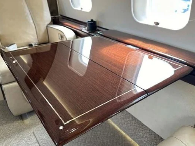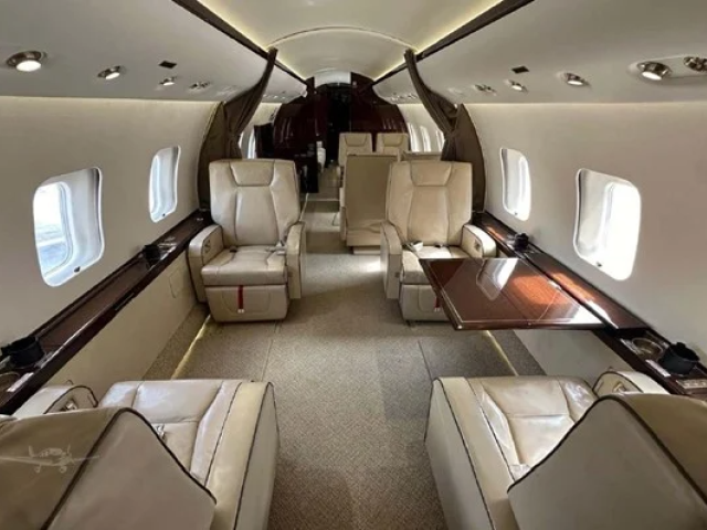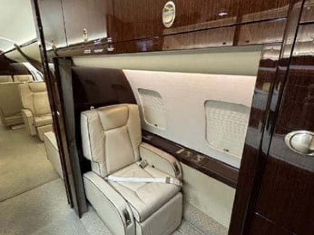 A meticulously maintained 13-passenger cabin, offering comfort, privacy, and productivity: