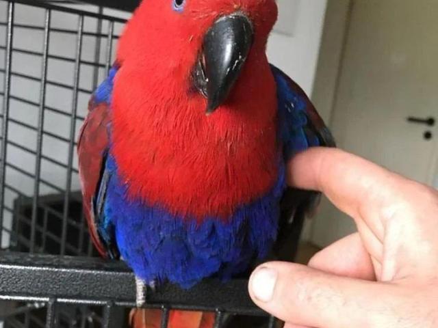 Meet Cordelia, a beautiful 2-year-old female Eclectus parrot. She is friendly, playful, and smart, enjoying time with her family and forming strong bonds. Cordelia prefers a female owner but is comfortable with males as well.